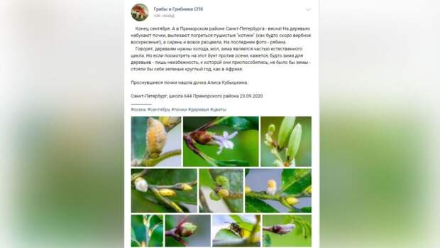 Санкт-Петербург, 23 сентября. Жители Петербурга заметили, что в Приморском районе города распустилась сирень. Об этом сообщает телеканал «Санкт-Петербург» со ссылкой на группу грибников «Вконтакте».