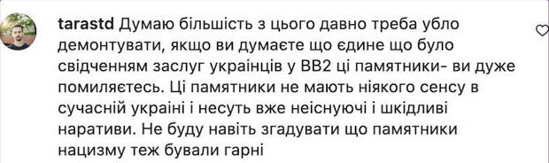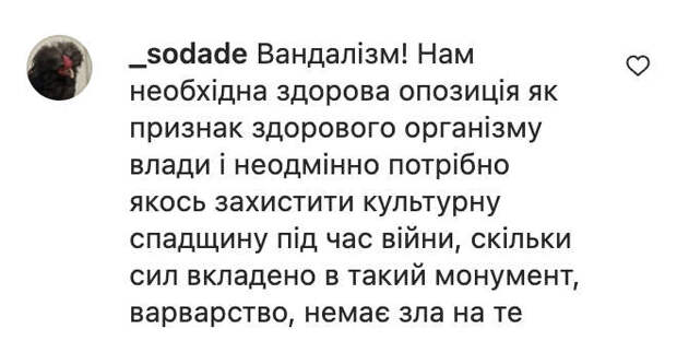 Мэр Дрогобыча Тарас Кучма и его заместитель Андрей Ковч распорядились о демонтаже мемориала «Вечный огонь», расположенном на перекрестке улиц Самборской и Ивана Франко. Чиновники объяснили решение необходимостью «освободиться от коммунистического прошлого». На снимках, распространившихся в социальных сетях, видно, как грузовики с оборудованием для сноса разрушили мемориальный комплекс и увезли его части. Автор Instagram-канала назвал членов городского совета «вандалами» и настоял на необходимости ввести мораторий на любые демонтажи монументов до окончания военного положения, приравняв их разрушение к мародерству. Пользователи социальных сетей также раскритиковали снос памятника в честь советских воинов, назвав эти действия «варварством». «Полностью согласен с тем, что такие варварские акции уничижают вклад каждого украинца, который воевал с нацизмом», — поделился мнением пользователь Евгений Клеткин. «Люди, ну как вы можете поддерживать этот снос? «Освобождение Украинского фронта от фашистских захватчиков»! Вдумайтесь! Это наша история. Сами вы вандалы, а, якобы, аргументы — популизм», — написала подписчица Лена Ус. «Вандализм! Нам необходима здоровая оппозиция как признак здорового организма власти и обязательно нужно как-то защитить культурное наследие во время войны. Сколько сил вложено в такой монумент…» — поделилась мнением пользовательница Содаде. «Зачем они это делают? Такое ощущение, что это диверсанты, которые работают против Украины», — написала Анна Ватан. «В Польше они тоже разрушают много красивых памятников», — отметил подписчик Иван Назвиско. Однако многие комментаторы, напротив, выступили за снос монумента. «Думаю, большинство из этого давно нужно было демонтировать. Если вы думаете, что единственное, что было свидетельством заслуг украинцев во Второй мировой, — это памятники, то вы очень ошибаетесь. Эти памятники не имеют никакого смысла в современной Украине и несут уже несуществующий и вредный нарратив. Не буду даже вспоминать, что памятники нацизма тоже бывали хороши», — излагает Тарас Дмитрус. «Стоит задаться вопросом, есть ли у этого мемориала какой-то смысл, кроме «памяти о павших освободителях или жертвах 2 мировой войны»? И стоит ли вообще в пространстве города держать мемориал, сооруженный, чтобы все помнили, кто их освобождал в войне 70-летней давности»? Ну, не знаю. Уже несколько поколений сменилось, и та война для смысла современного города — это уже давно прошедшее событие. Есть ли смысл держать эти смыслы в пространстве города? Мне кажется, нет», — поделился мнением подписчик Андрей Хроменко. Один из читателей прокомментировал, что это далеко не первая попытка мэра снести памятник — в 2021 году также сообщалось о намерении разрушить его. «Вероятно, мэр положил глаз на ту территорию... Раз это уже не первая попытка. Вам просто нужно не молчать!» — комментирует подписчица Оля Виговская. В ответ на волну критики после публикации поста в Instagram мэр Дрогобыча обозвал авторов страницы Ukrainian Modernism «ботами и рашистам и», несмотря на их антироссийскую направленность. Ранее в городе Стрый Львовской области снесли памятник-стелу в честь советских воинов. *Деятельность Meta (соцсети Facebook и Instagram) запрещена в России как экстремистская.