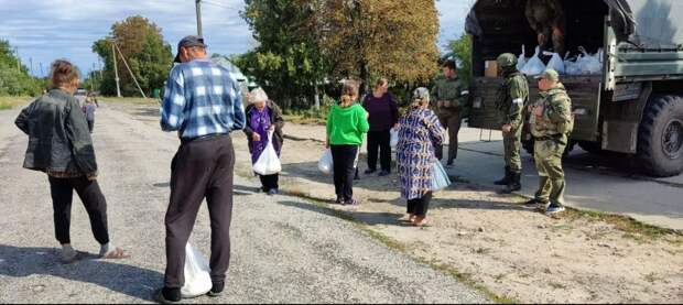 наборов добровольцы вместе с российскими военными раздали жителям небольшого села