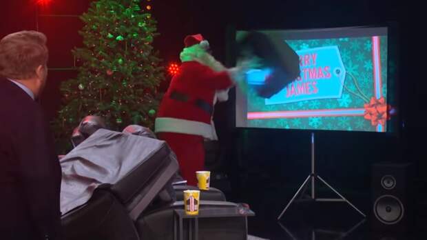 Разъяренный Санта-Клаус разгромил студию на съемках популярного американского ток-шоу «Очень позднее шоу с Джеймсом Корденом.