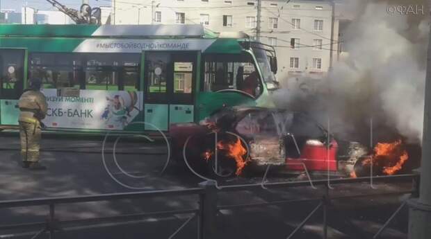 Калининград, 20 сентября. Пожар уничтожил иномарку на площади Победы в Калининграде. Видео ДТП появилось в распоряжении ФАН.
