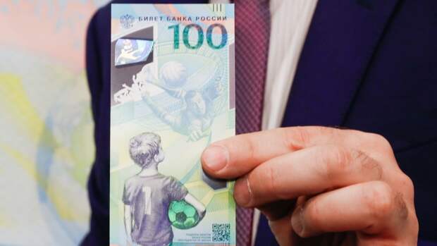 Банк России выпустил сувенирную банкноту номиналом 100 рублей к чемпионату мира по футболу в 2018 году. Она вошла в обращение 22 мая. На лицевой стороне купюры изображен мальчик с футбольным мячом в руке, вратарь в прыжке за мячом, а на обратной — футбольный мяч.