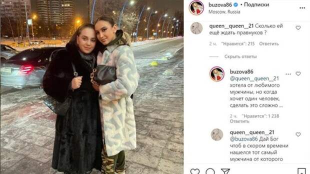 Воскресным вечером Бузова опубликовала в личном микроблоге Instagram совместное фото с мамой. Фолловеры стали спрашивать певицу, когда ее бабушка наконец сможет понянчить правнуков. Знаменитость ответила одному из подписчиков, что Дава не горел желанием заводить с ней детей.