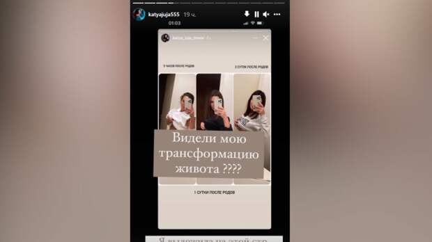 Роды прошли хорошо. Сейчас блогер задумывается о восстановлении фигуры.Катя Жужа намерена вернуть былую форму, поэтому ей придется вновь ограничивать себя в питании. Несмотря на то, что прошло всего несколько дней после рождения малыша, блогер похвасталась трансформацией тела. Она показала, как изменился ее живот за двое суток после родов.