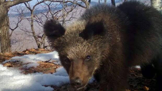 На одном из опубликованных в интернете снимков, видимо, самый любопытный юный мишка подошел к камере вплотную и оставил на память селфи.