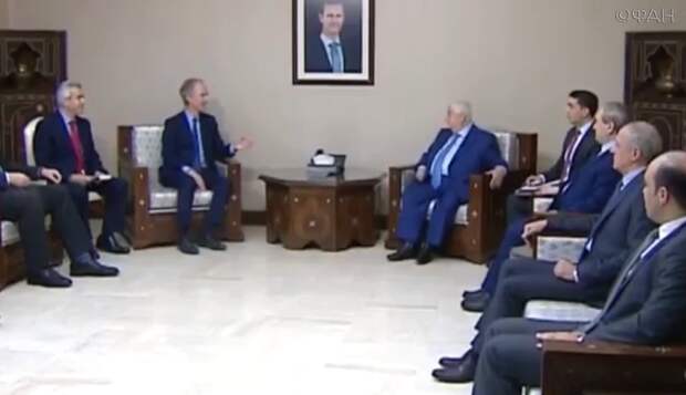 Министр иностранных дел Сирии Валид Муаллем обсудил со специальным посланником ООН в Сирии Гейром Педерсоном и его делегацией ряд тем и идей, связанных с политическим процессом, включая формирование конституционного комитета.