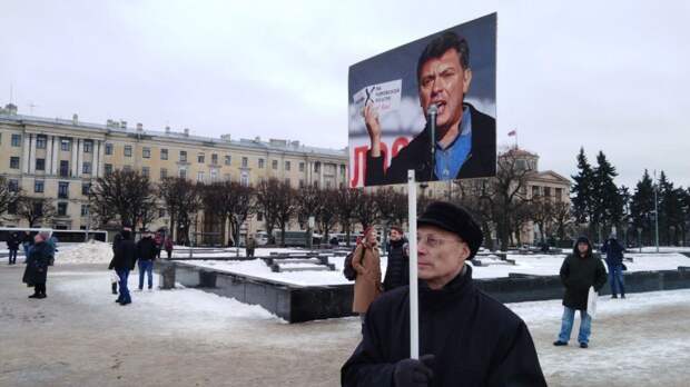 Акция памяти политика Бориса Немцова собрала на площади Ленина в Петербурге не более тысячи человек. Заявленный как массовый, марш активистов провалился.
