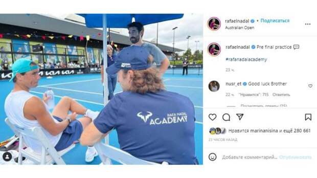 Мельбурн, 30 января. Бывшая первая ракетка мира, 20-кратный победитель турниров Большого шлема Рафаэль Надаль опубликовал пост в Instagram перед финальным матчем Открытого чемпионата Австралии (Australian Open — 2022) с россиянином Даниилом Медведевым.