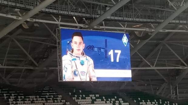 Креативно представляли игроков самарской команды на табло стадиона. Каждый из футболистов «Крыльев» был изображен в скафандре, а главный тренер Игорь Осинькин предстал в образе руководителя Центра управления полетами.