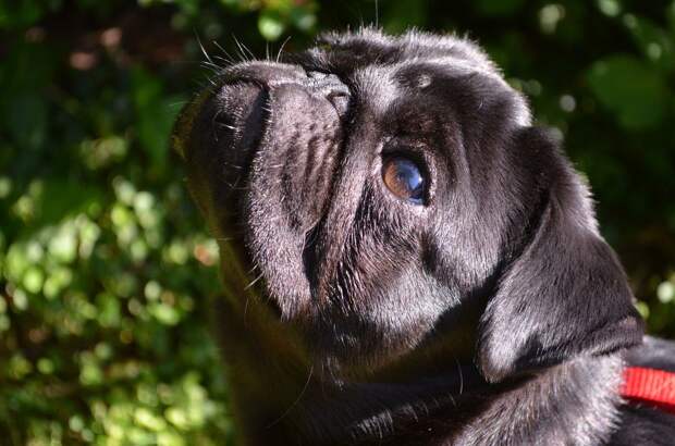 телосложение, короткие рыжие волосы и серые глаза. С собой был мопс черного