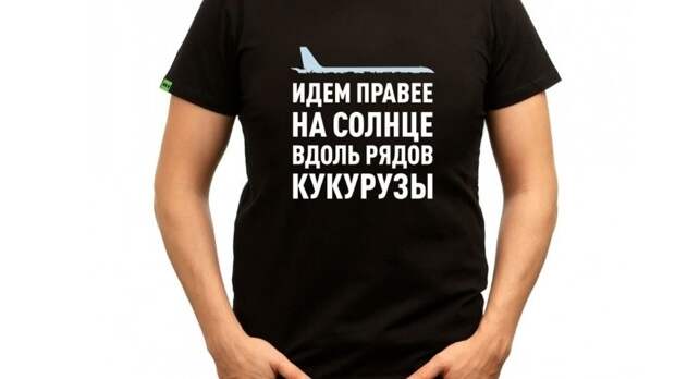 Футболку с надписью «Идем правее, на солнце, вдоль рядов кукурузы» можно приобрести на официальном сайте магазина RT.